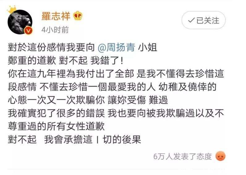 罗志祥沉默半年后开口,不是道歉是求救,他比谁都怕被遗忘